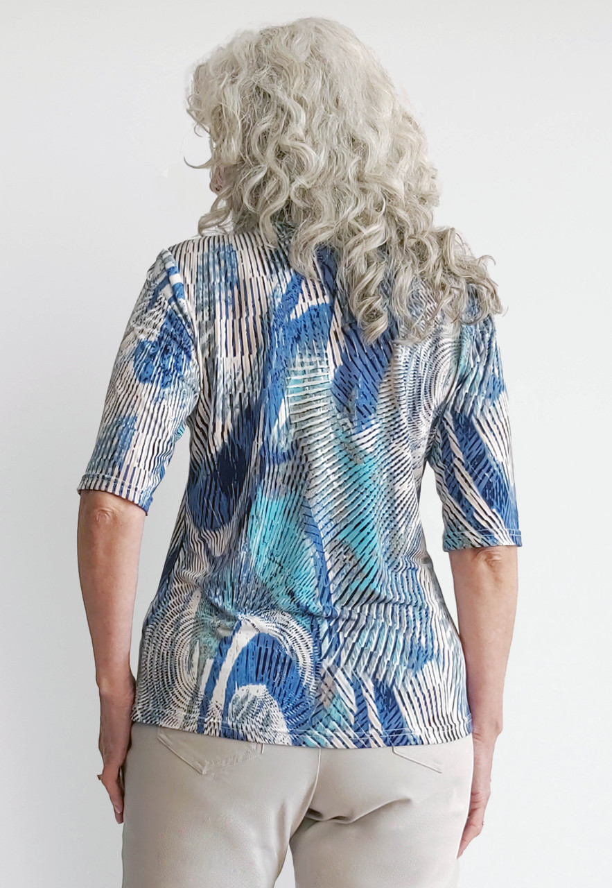 Dive into style with our exclusive Ocean Swell Australian Made top. Featuring a print inspired by the serene yet dynamic beauty of the sea, it evokes images of swirling currents and gentle ocean waves. Its flattering silhouette and vibrant design make it a versatile piece, perfect for adding a touch of coastal charm to any outfit. Pair it with our Chi-Chi pants in Pebble or navy slacks for a timeless and polished look. GG xx.