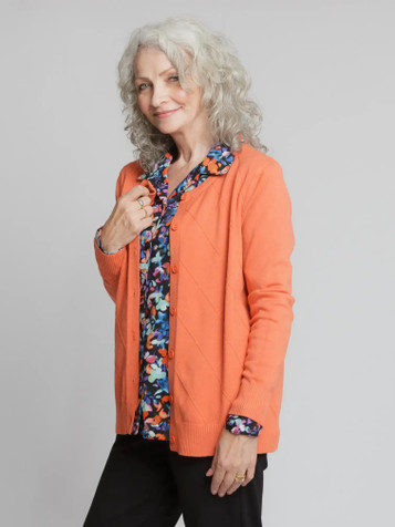 Nothing says luxury like our lovely diamond stitch wool blend cardigan. Buttoned to neck with colour matched buttons. Wear with a smart blouse, skivvy or just cuddle up at home in style. GG xx