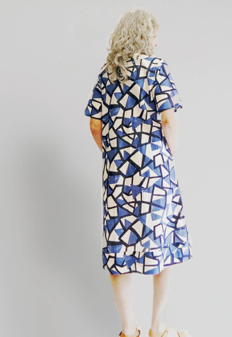 Piece together a fabulous look with this Puzzle Play cotton dress. Featuring a geometric design of blue, white, and navy shapes, its breezy cotton fabric makes it the perfect companion on a hot day. GG xx short sleeves and round neckline. pintucking...